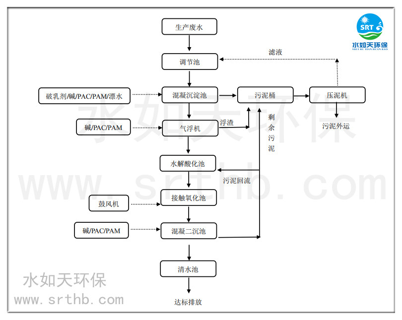 項(xiàng)目廢水處理工藝為:混凝沉淀+水解酸化+接觸氧化